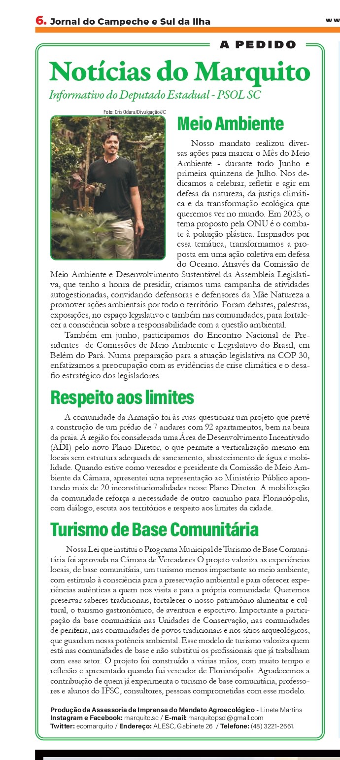 NOTÍCIAS do Marquito: defesa do meio-ambiente e apoio à Armação