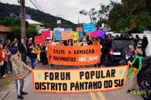 ‘Foi uma manifestação muito exitosa, que levaremos adiante com outras ações; pretendemos levar nosso protesto também à Câmara Municipal, Prefeitura e Ministério Público estadual e federal’, assinalou a arquiteta Zoraia Vargas Guimarães, diretora da Associação dos Moradores da Lagoa do Peri, que integra o fórum. ‘Queremos a revogação da Armação como ‘área de desenvolvimento incentivada’ (mecanismo criado na revisão do plano diretor que flexibiliza o gabarito predial em quase toda a Ilha.)’, afirmou.