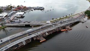 Alvo de polêmica e de muitas idas e vindas desde seu início, há pouco mais de dois anos, que envolveu até queda-de-braço judicial devido a questões ambientais, a nova ponte da Lagoa da Conceição foi finalmente liberada ao tráfego no dia 04/07. O uso do novo equipamento no entanto será apenas parcial até pelo menos setembro, quando deve ficar pronta. Até lá dividirá funções de tráfego com a ‘ponte velha’. Notícia triste é que, ao final da obra, o destino previsto para a lendária ‘pontezinha da Lagoa’ é a demolição. (Foto: Marcos Albuquerque/PMF/Divulgação/JC)