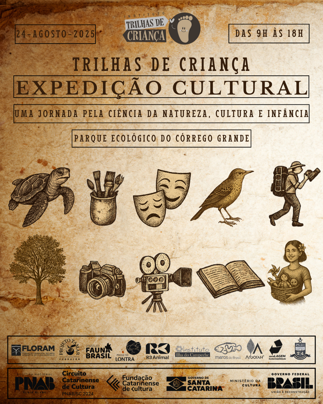 No dia 24 de agosto de 2025, o Parque Ecológico do Córrego Grande se transformará em um grande território de descobertas e afeto com a “Expedição Cultural Trilhas de Criança”, um festival gratuito que une ciência, natureza, arte e cultura, promovendo experiências para todas as idades. Das 9h às 18h, o público poderá vivenciar mais de 30 atividades que vão desde trilhas sensoriais e oficinas criativas, até exibições de curtas-metragens premiados e apresentações artísticas. O evento é uma realização do Instituto Trilhas de Criança, referência em ações que conectam famílias à natureza de forma lúdica e educativa em Florianópolis.