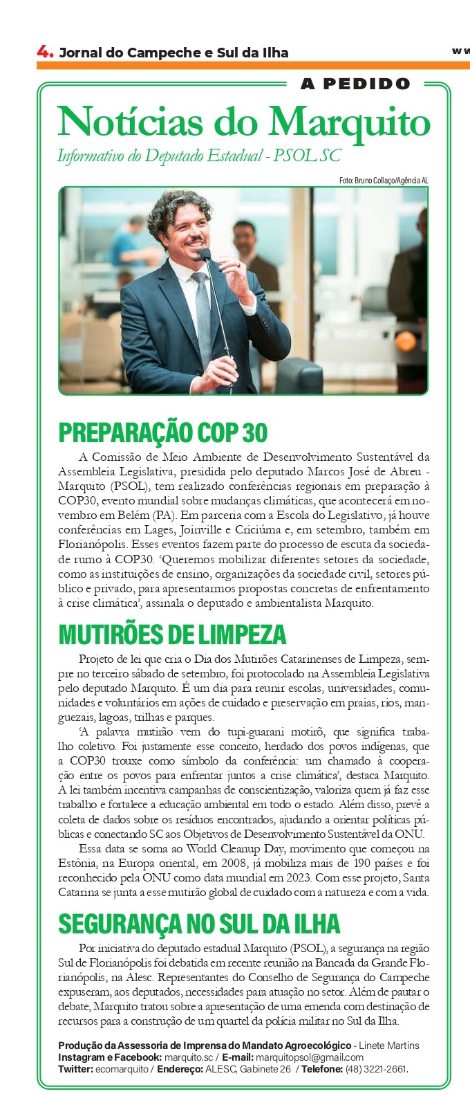 NOTÍCIAS do Marquito: preparação à COP30 e apoio a quartel no Sul